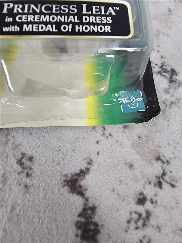 The product is a 1998 Star Wars action figure collection featuring Princess Leia in her ceremonial dress, manufactured by Hasbro. This vintage collectible is based on the character Leia Organa from Star Wars: Episode IV – A New Hope, and is part of the Star Wars franchise. It appeals to fans of the TV, movie, and video game themes, and is a sought-after item for those interested in Star Wars memorabilia from the 1990s. The figure is a nostalgic piece that captures a memorable moment from the iconic sci-fi film series. The package has some shelf wear. Never been taken out of
