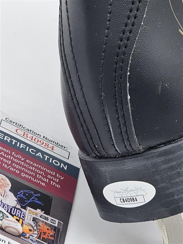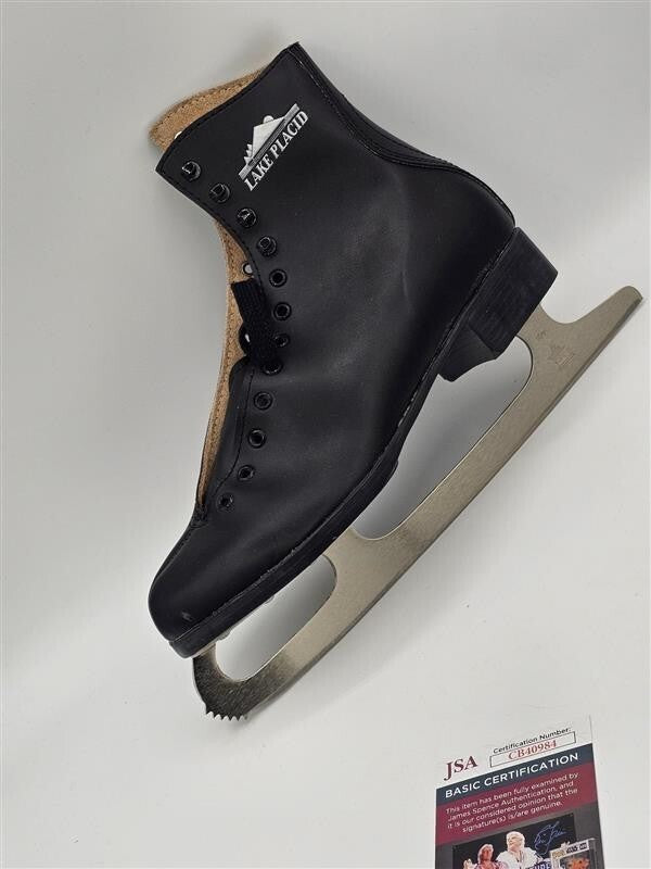 The product is a Brian Boitano autographed ice skate, signed by the Olympic gold medalist in figure skating. The autograph has been authenticated by James Spence Authentication (JSA) ensuring its authenticity. This unique piece would make a valuable addition to any sports memorabilia collection, especially for fans of figure skating and Olympic sports. The ice skate serves as a tangible reminder of Boitano's impressive accomplishment in the world of competitive skating. COA can be verified on the JSA website. Basketball case does have a crack in the upper corner. Please refer to the pictures in regards of condition. You can also send a message with any other questions you may have. We will typically respond to any messages the following business day. This will be a great item for any sports collector.
